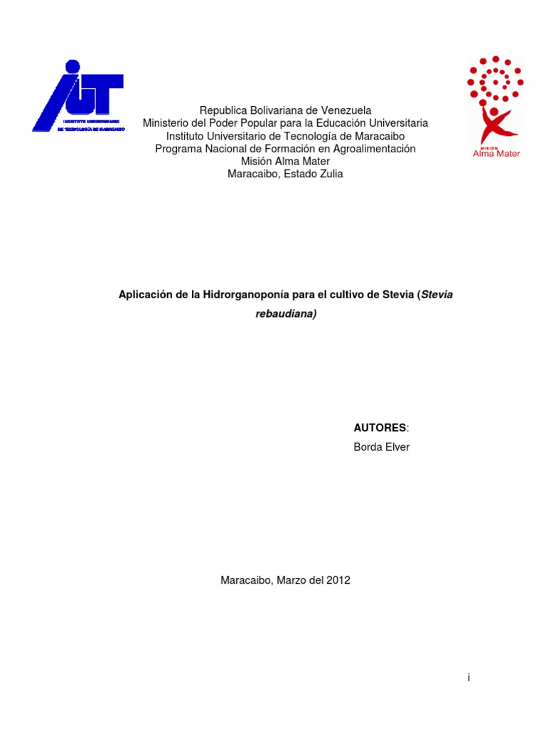 Aplicación de la Hidrorganoponía para el cultivo de Stevia (Steviarebaudiana)